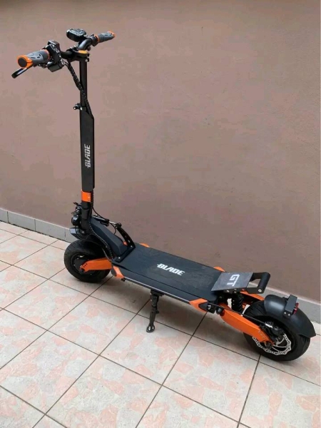 La trottinette Blade GT Plus. Spécialement adaptée aux trajets prolongés, elle vous permet de parcourir jusqu'à 80 km (65 km en moteur double), à une vitesse maximale sur voie privée de 85 km/h ( vitesse bridée 25 km/h).